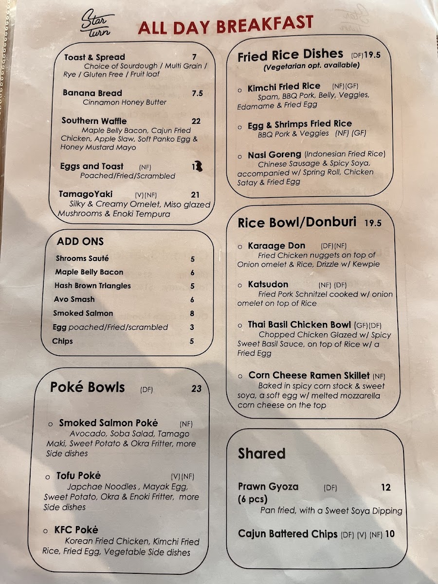 Star Turn offers a sumptuous menu that's a vibrant blend of Asian-inspired flavors, with dishes like their Kimchi Fried Rice and Nasi Goreng showcasing their commitment to authentic taste. Diners rave about the generous portion sizes, particularly the crispy katsu chicken, which consistently leaves a lasting impression, as noted by Weng Hei Chan—one of many who has been pleasantly surprised by the robust flavors and hearty servings.